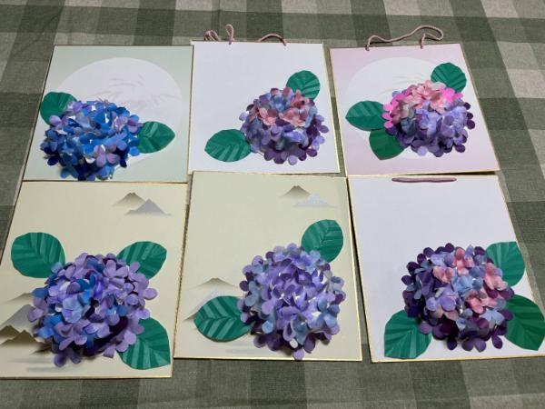 6月トトふれあい文庫 トトふれあい文庫 2025.06.07 6月と言えば紫陽花…☔折り紙を花びらの型に切って、紙椀の裏にペタペタ…思い思いの色を貼りました。 一服のあとは、絵本「だるまさんシリーズ」3冊をゆっくり読みました。クスッと笑える素敵な絵本です!